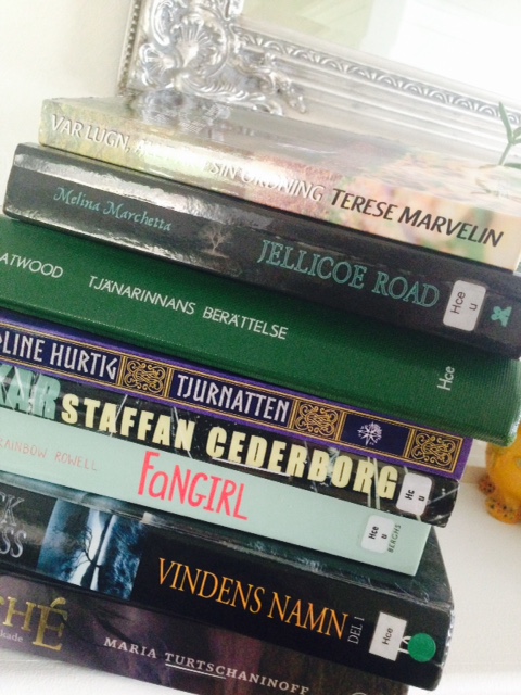 Min kommande läsning ser ut så här. Jag har börjat lite i några men inte kommit igång med någon ordentligt än. På toan ligger ju också sedan en månad tillbaka Hundra år av ensamhet och det lär nog dröja innan ni får höra om den. Kan inte minnas när det tagit sådan tid för mig att läsa en bok sist. Annars känns det här som en härlig blandning, speciellt eftersom jag kommande vecka blir hemma med vattkoppesjukt barn. Mycket tid för läsning alltså, men jag känner mig redo. De flesta är nya men Jellicoe road och Tjänarinnans berättelse har jag läst tidigare. Men båda kräver ett inlägg känner jag och då krävs också en omläsning. Det blir en härlig läsvecka!