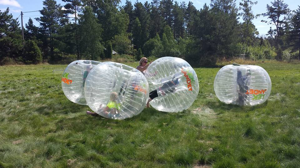 Efter vattenkriget kommer man till sumobollarna. Ja, ni ser ju själva. Upp och ner och rulla runt. Har jag sagt att även vuxna får göra allt i parken …