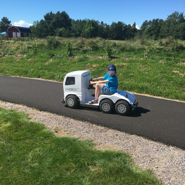 Precis bredvid finns elbilarna och en ganska lång bana med både kurvor och tankställe. Passar bra när man blivit trött i benen och inte orkar trampa själv. Det finns lastbilar och traktorer som alla är lättkörda. Har jag nämnt att vuxna också får prova på allt? Och det gjorde vi.