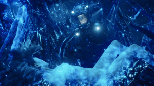You need to wake up now kid. En slags lugn och förtrolig fadersgestalt. Hon är rädd och han lugnar. Hon naken och han i rymddräkt. Och efter någon minut fastslår hon att de är menade för varandra och de börjar kyssa varandra innerligt. Eh VA?