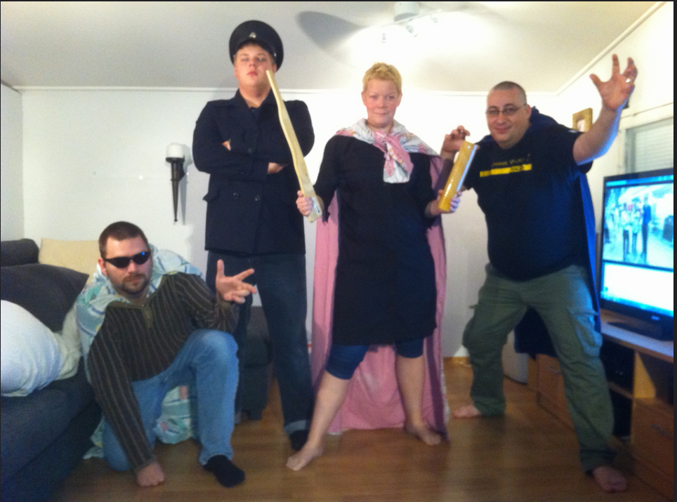 Ett av uppdragen var att återskapa superhjältebilden på riktigt och man hade en timme på sig från det att man fick uppdraget. Min man och goda vänner lyckades bra tycker jag! Emils bysse och ett rosa påslakan kan göra alla till superhjältar.